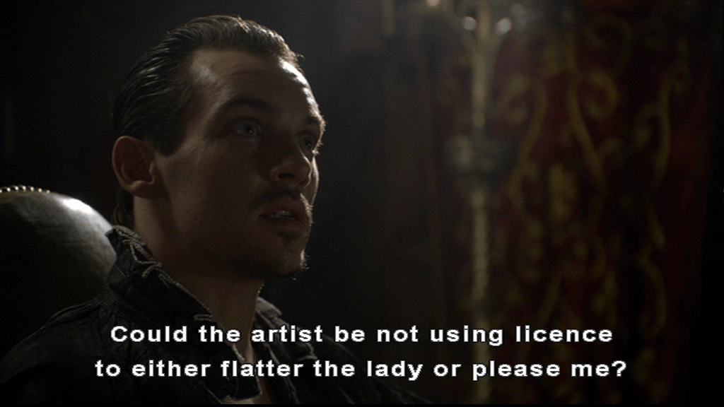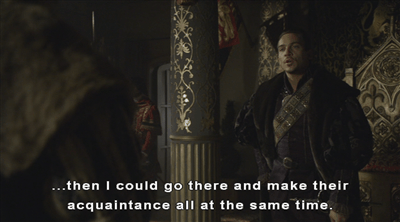 In the actual historical incident Henry, at this point, apparently blushed and laughed (5), but The Tudors’ Henry threatens the shit out of Castillon, sends him from his court, and looks after him with a very dark stare.
