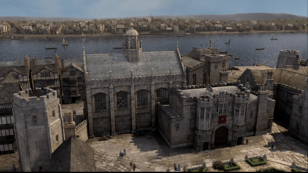 We come back in with Henry and Cromwell on the road home from the nursery at Hampton Court.