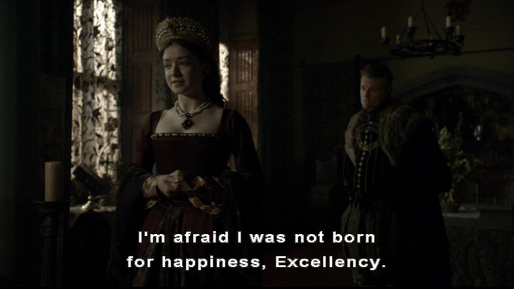 In The Tudors she is heart rendingly afraid, even Edward Seymour’s mask slips a bit, and after his rough order to “For God’s sake have some dignity” (It’s just so much easier on your executors) you see on his face that even this bastard is having some trouble with this one.