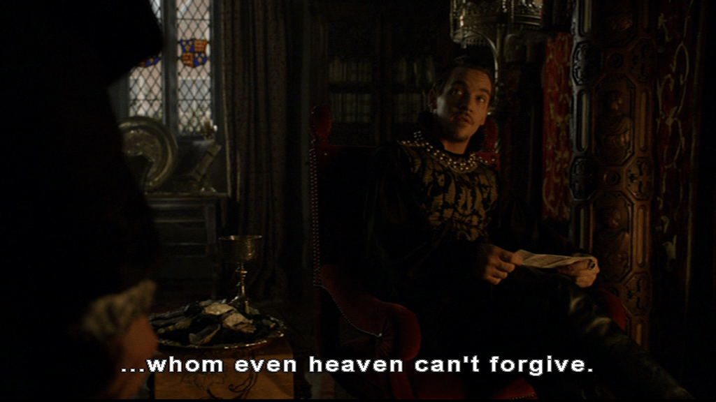 Well, not your husband, Mrs Seymour, we made that clear last episode. The Tudors wraps up that hanging thread in a non historically accurate way, but it keeps things tidy, and it kind of chimes for The Tudors’ version of the character of Edward Seymour.