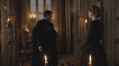 In the stony yet cozy maze that is Whitehall at night, Catherine Brandon catches her husband illicitly plotting with Edward Seymour.