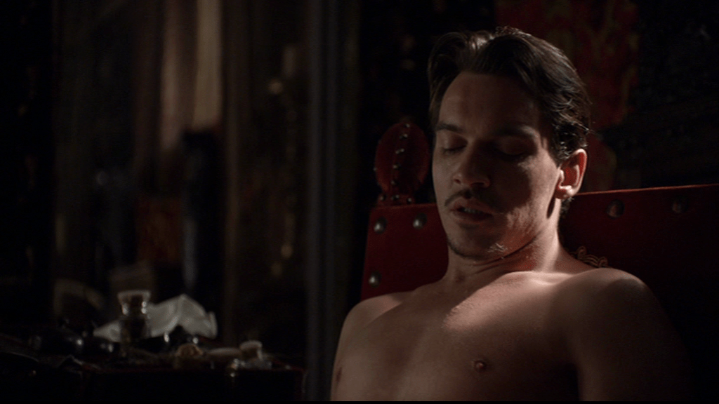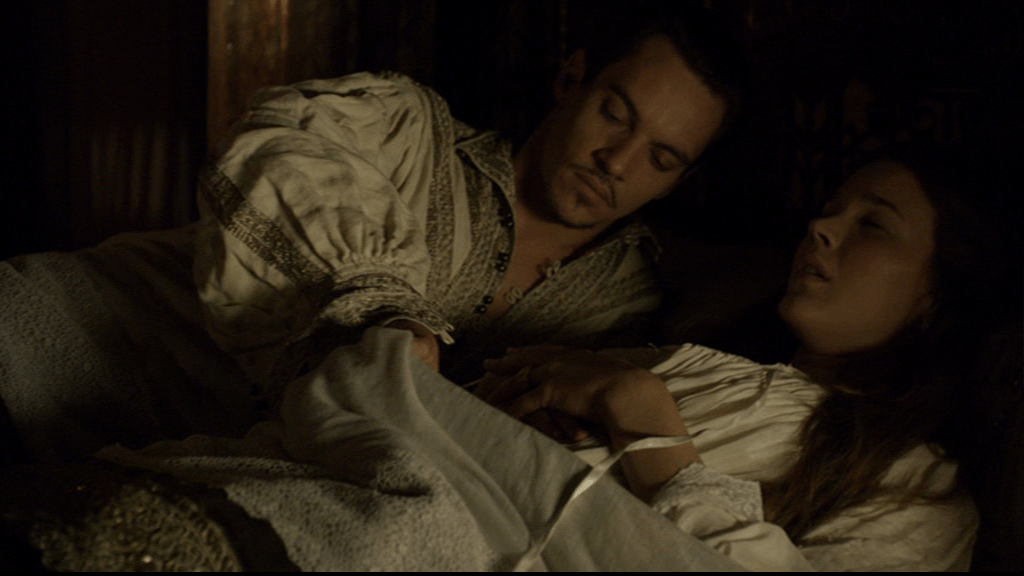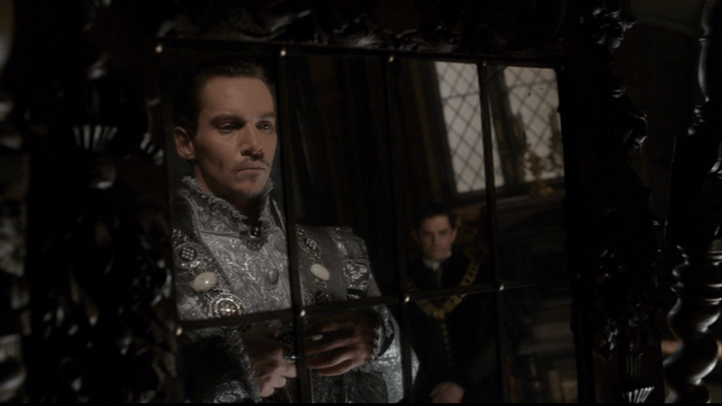 The scene succeeds because of the smart script. This is a distillation of the character of Cromwell that The Tudors‘ has been drawing for 3 seasons now, and a beautiful expression of the change in religious outlook that Protestantism brought to Western Europe. All helped generously along by Michael Lavery giving good slightly clueless young page, the score stepping up, the coziness of a rather intently candle lit room, and some really great line deliveries from James Frain.