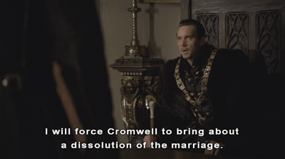 Henry then runs the flaw Brandon was talking about past Cromwell and doesn’t get the enthusiastic response he was looking for. He tells Cromwell “there must still be grounds…