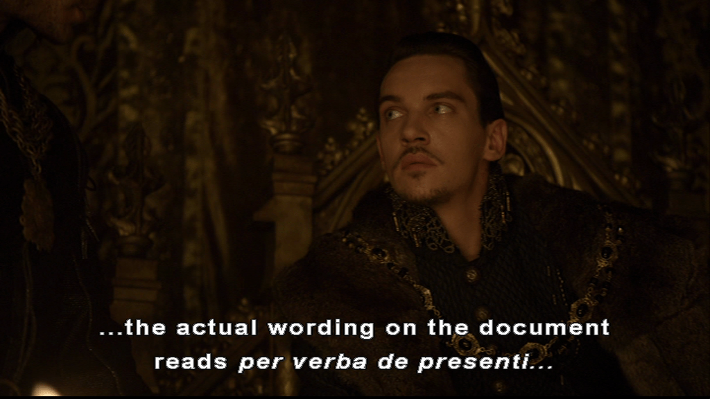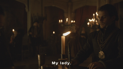 It’s rather gratifying to see that Mary is important enough that, despite officially being a bastard, everyone gets up when she walks into the room, giving us our segue from the fully fictional content to the historical ganache centre of the ending of the scene.