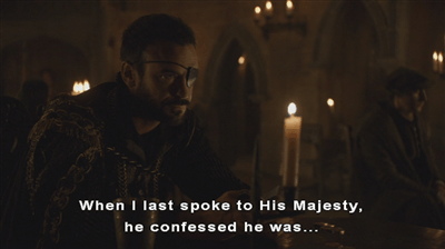 “for if he remain in his grief and trouble we shall all some day smart for it” is how the rest of it went. Cromwell’s expression is that of a man facing a void, and I think we’re seeing the effects of Cromwell being massaged as a character before…you know. Actual Historical Cromwell had a more robust response: “Yea. How?” is what he actually said, and Wriothesley didn’t really have an answer.(1)