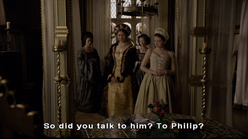 A couple of things. The Tudors timeline just gets all over the place at the end of Season 3. Almost everything from halfway through the last episode to the end of this season does fit into the period January 6th 1540 (Marriage of Henry VIII and Anne of Cleves) through to 28th July 1540 (Death of Cromwell). One exception was Duke Philip’s visit which (well, his first visit) started on December 9th 1539 (q). This means the convo between Anne and Mary coming up couldn’t have happened as he got here before Anne did. But it’s a good way to introduce him, and to get Anne and Mary’s relationship rolling.