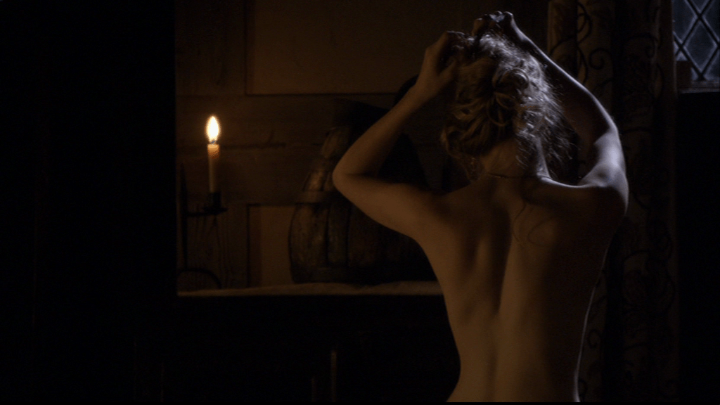 Henry is intrigued and finding it harder to turn round to see to the candles, as Katherine gets down to nude.