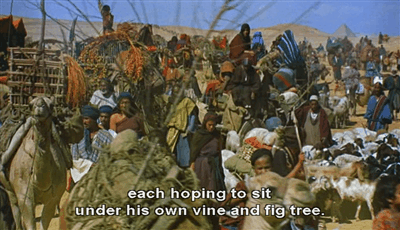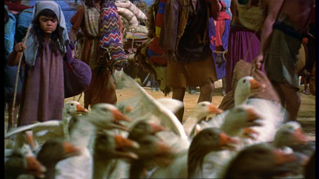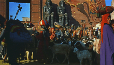 The Exodus Sequence is the high point of the film, and is primarily a montage made of many layers, with little scenes and vignettes and glimpses. Wide shots in front of the gates and into the desert with massive crowds provide spectacle and movement.