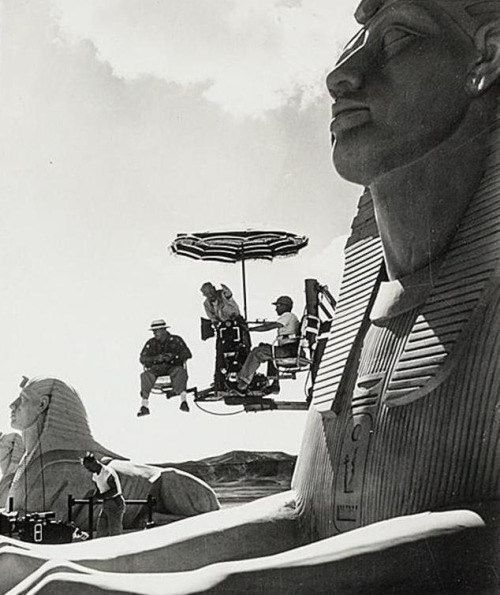 Site inspections and filming on location in Egypt started well, with Cecil pleasantly surprised by what had been accomplished. They would begin with some shots of Yul Brynner leading Pharaoh’s army out of the 107 foot gates of Rameses and through the near quarter mile avenue of sphinxes that had been built. All the offices and support buildings they were going to use had been built in behind those gates, with parking for hundreds of vehicles, corrals for livestock and awnings everywhere to try and offer outdoor space for the people working in these buildings with no air conditioning. Some members of the crew, like propmaster Bob Goodstein, worked at this location for months, some, like unit Production Manager Don Robb, for nearly a year.
