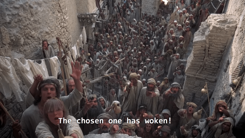And, look, the audio probably describes it better, but this scene really gives me “Israelites about to join a wagon train westward” and it’s going to be the kind of wagon train that has a lot more singing about starlight than dying from dysentery.