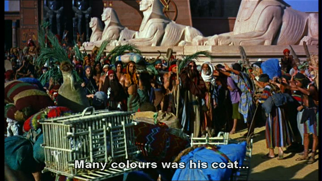 The score is almost relentlessly rapid and upbeat for the crowd shots. This was deliberate, a note from De Mille, and young composer Elmer Bernstein (just 32-33 when he wrote the score for The Ten Commandments) took it to heart. The point was that mirroring the mood he thought he saw in the footage wasn’t necessarily right, and wasn’t working here. Bernstein had been scoring the Exodus sequence to a quite slow piece DeMille insisted that it needed to be upbeat, and that by doing that it would lift the pace of the action and the mood onscreen.