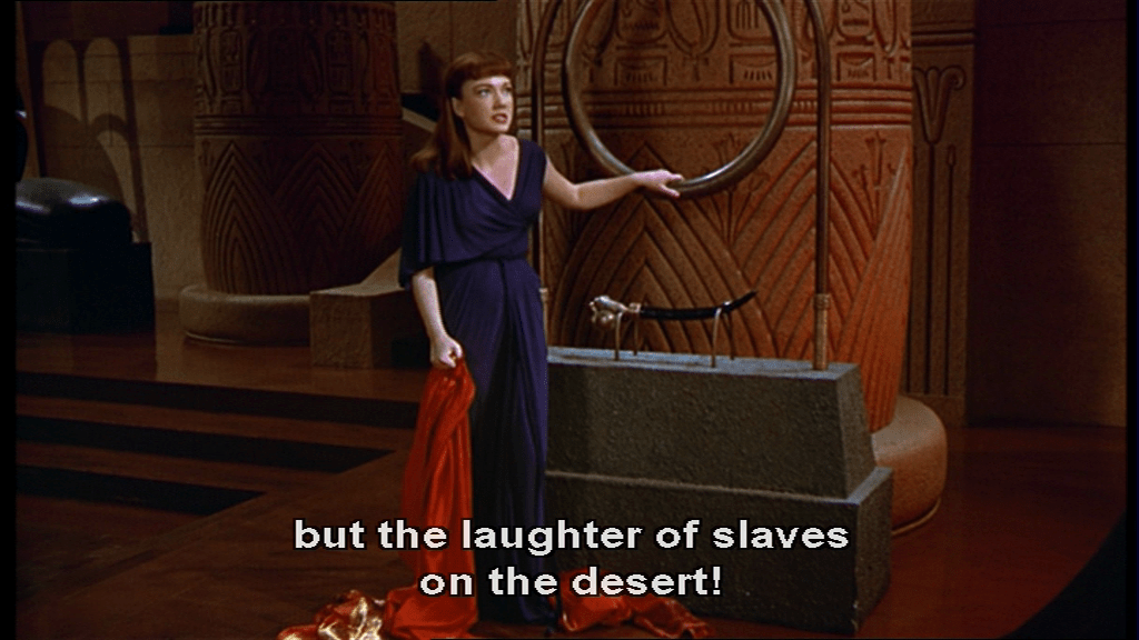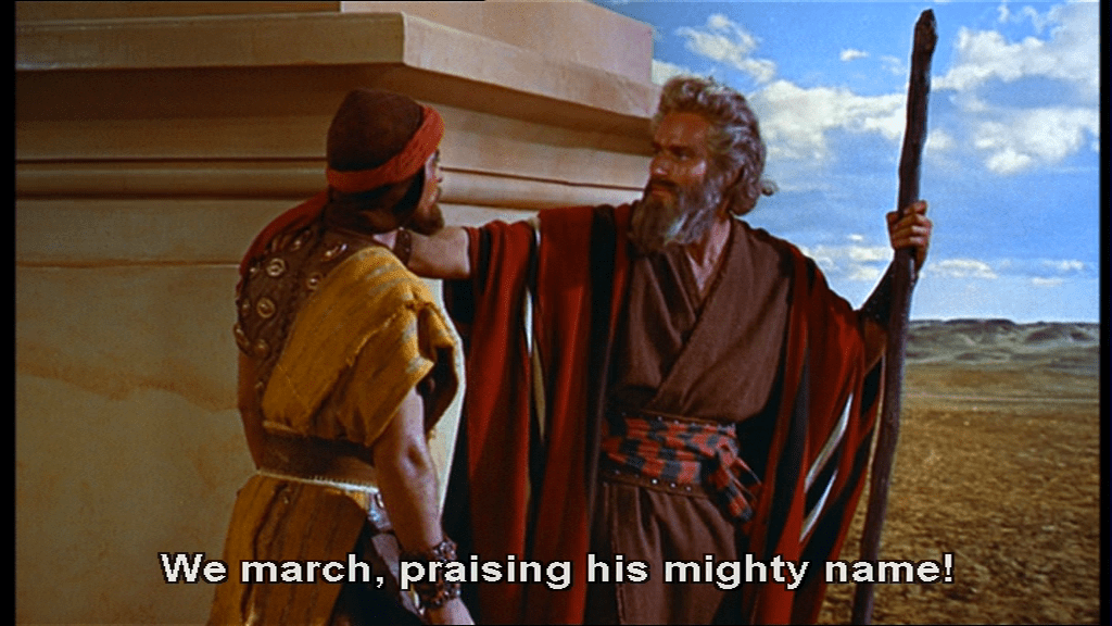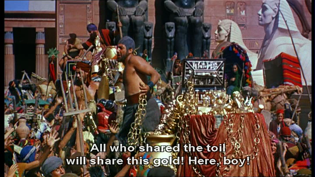 But the stars in this section are the wide shots, anyway. In them you can see De Mille’s vision from 1923 finally getting fully realized and see mass crowd scenes that were seldom rivaled in the coming decades and wouldn’t be surpassed until Gandhi in 1982, and then later by a lot of movies after Gladiator (2000) and The Lord of the Rings (2001-2003) when CGI came of age.
