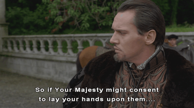Faith healing by the King was a thing for a very long time. What we have evidence for was a lot more specific than this instance given to us by The Tudors. The only believed cure for Scrofula (a form of TB that came with seriously enlarged lymph nodes) for most of History was the touch of the King, and later in history Charles II’s enthusiastic revival of the ceremony of ‘Touching for the King’s Evil’ and William III’s refusal to countenance it, showed their people and later history where each of them stood on the ‘Divine Right of Kings’ debate.