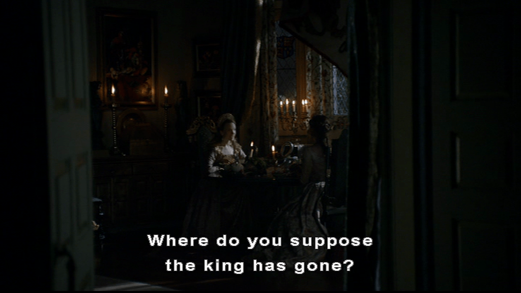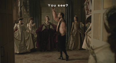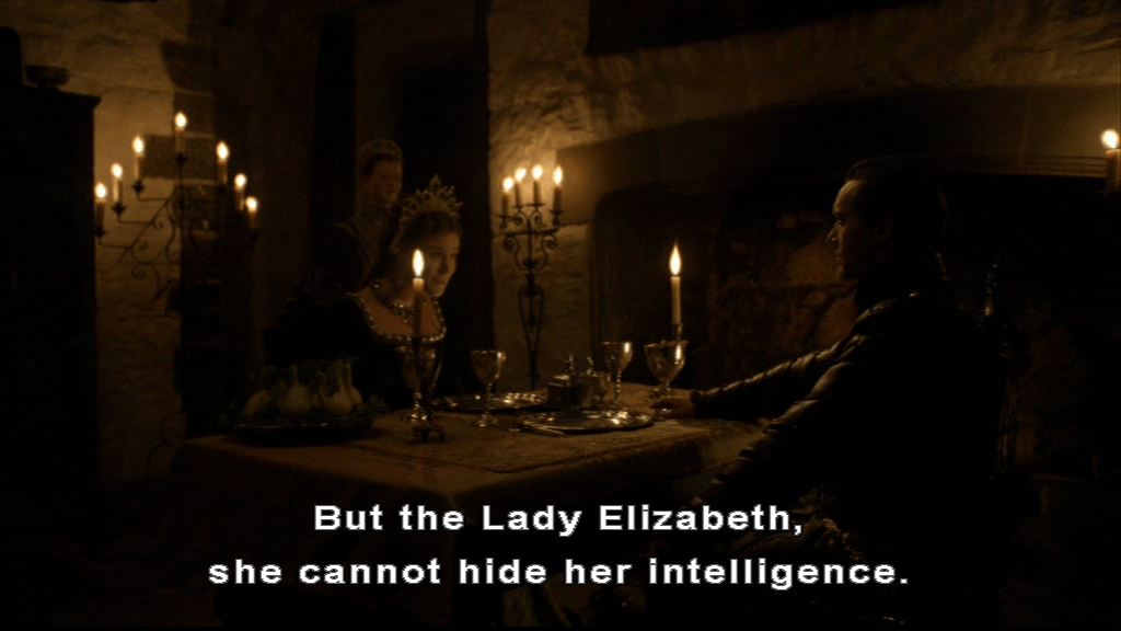 Anne is delighted and applauds Elizabeth’s progress, when unexpected applause arrives from above and we see whose POV we’ve been watching through.