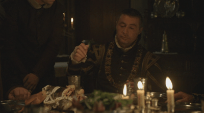 The fact that she started seeing Culpeper in that period gets unknowingly referenced by Henry, causing some staring across the room from Jane Boleyn and real careful blankness from Bulmer.