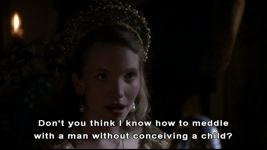 Katherine had the Howard outlook of not really worrying what the little people knew or thought, dealing with them only if they were or seemed likely to become a problem. Just as here, in The Tudors, she seems pretty oblivious to the danger in having your fantastically risky assignations organized by someone that really doesn’t like you at all.