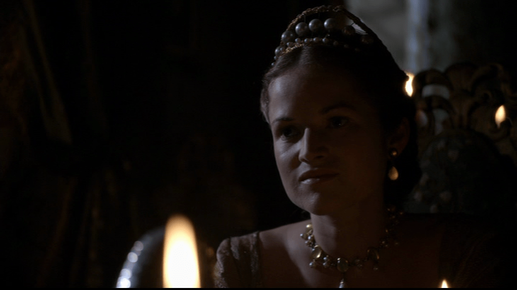 But actual historical Henry was never heading here, as The Tudors’ Henry gets gently directed to think about his wife.