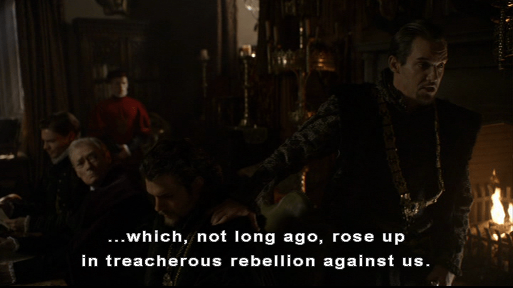 The Tudors Edward Seymour is just the kind of jerk that would take over a social group once he joins it, and the other members might be fine with that as he might be the most junior member, but he is by far the most influential member out in the world. He says he has been ordered by the King to oversee Surrey’s induction prep, which either means Henry has a very pointed sense of humour or Edward has given the rules a thorough re interpretation to make that the order.