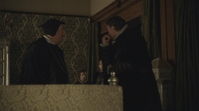 Prompted by a question from Lady Bryan, Hertford decides not to inform the King. The progress is important, and right now the risk of Henry’s anger at being called back unnecessarily is slightly higher than the alternatives. Still, he reminds the Physician of the paramount importance of this child and his work, saying “For the sake of peace in this realm…