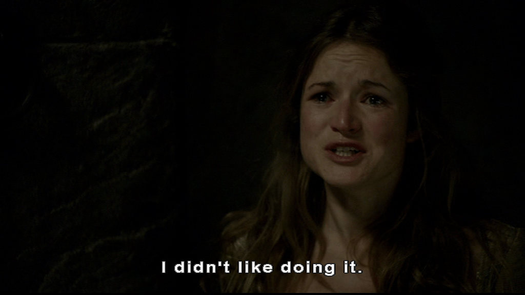 I just watched this for the first time. For all the gripes I have about this show and its accuracy (as well as stuff like Rhys Meyers becoming more Irish by the episode as the show sprints for the finish line), Catherine’s execution was remarkably well-handled. After almost screaming at the TV for several episodes out of frustration at her stupidity and immaturity, the crew and Merchant did a great job at making you feel sympathy and respecting her courage in her final moments. That paled next to Lady Rochford’s brief time on the scaffold though – that may have been the biggest tearjerking moment in the whole of this series for me. I loved how the crowd’s sorrow came across as well, compared with the reception Culpeper and Dereham received.