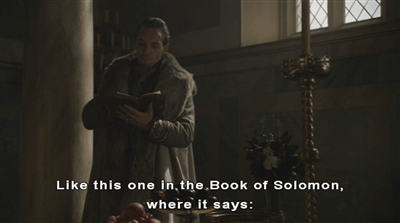 Brandon comes in, and whatever else he’s given up about being the Duke of Norfolk, he’s kept the Catholic religious outlook, so when asked by Henry he confirms that he has never personally read the Bible. That gives Henry a chance to read a very pointed extract from Proverbs 5–