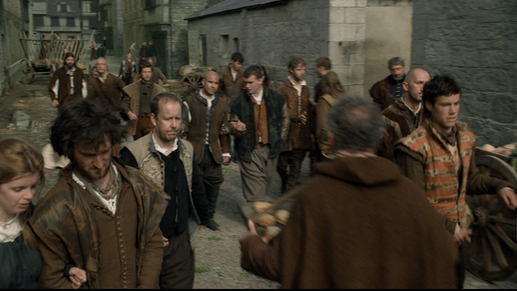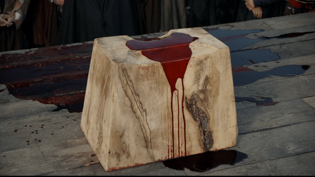 The way people visibly wince onscreen as well at the thud of the axe – despite flocking to a public execution, these folks weren’t all bereft of humanity. It was just a different time. There was a report from Richard Roose’s execution of a pregnant woman swooning at the horrific sight of him being dunked into the boiling cauldron and then yanked out again, although supposedly most people in attendance were pretty chipper about it.